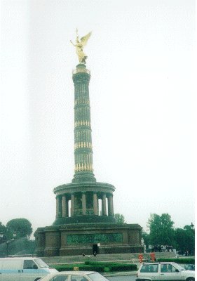 次にあるって戦勝塔まで行く。この旅の基本は歩いて観光することである。この塔も上まで歩いて登れるが、278段の階段は寝不足の身体には非常にこたえた。この塔のまわりも車道になっていて、なんかパリの凱旋門みたいなかんじである。そのまま目の前の6月17日通りを歩いてブランデンブルク門に行く。ここはさっきの戦勝塔とは違い、観光客が結構いて露店なども出ていた。ここで、ビール(3DM)とジャガイモ(これぞジャーマンポテト?:3DM)をたべお昼にする。