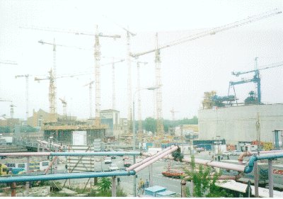 この後ベルリンの壁跡を見に行こうとするが、小雨が降り出してきてしまう。まぁそれほど強くないのでそのまま行くことにする。旧東ドイツ地区は至る所で工事が行われていて、どれがほんとの壁跡だかさっぱりわからない状態である。適当にそれらしきものを写真にとったが、後で通行人に聞いてみると全然関係ないものを写していたらしい。 :(