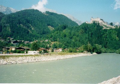 InnsbruckからSalzburgに列車で行くにはオーストリア国内だけを通っていくルートと、いったんドイツ国内に入ってまたオーストリアに入り直すという二つのルートがある。しかし前者だと約3時間半かかり、後者では約2時間で着いてしまうのである。なぜかというとオーストリア国内だけの方は山道であまりスピードがでないことと駅にも結構停車するからであり。ドイツ経由のは比較的平坦でスピードが出せることと、ドイツ国内では停車はしないという理由による。しかし、特にこれといって急ぐ用もないし、国内のルートの方が景色は良いと書いてあったのでわざわざ遅い方のルートでSalzburgに行くことにする。