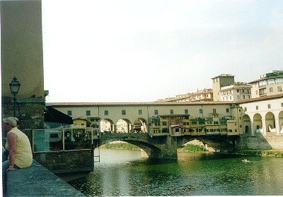 そのあと、ヴェッキオ橋に行くが、Firenze最古の橋といってもべつにたいしたことはなかった。しかも、ほとんどすべてのお店がアクセサリーや貴金属のお店なので自分には興味がない。その後、サンロレンツォ教会近くのノミ市をみながら駅まで戻り、荷物を取ってバス停に行く。ユースまでの行き方の書いてある本には17Aと17Bとあって、17Bに乗るようなことが書いてあったが、実際に来たバスには"17"としか書かれていなかった。バスの運転手さんにユースに行くか聞くと、これでいいみたいなのでとりあえず乗る。イタリアのバスは車内放送や電光掲示板もなく次がどのバス停かが全くわからない 同じバスにバックパックの人がいたので、その人が降りるところで一緒に降りようとしたところ、別の人に日本語で「ユースならここですよ」と声をかけられた。彼は昨日からこのユースに泊まっているらしく、ユースに着くまでの間いろいろと話をした。ここのユースは昔お城だったところをユースに改装したらしく、受付や庭の雰囲気は最高である。ただ、ベッドはマットレスが薄くいまいちだった。