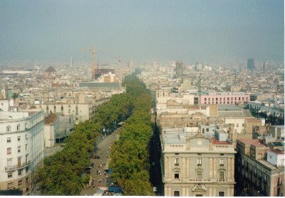 その後、またコロンブスの塔へ行き、エレベーターで上に行けるというので行ってみる(250pts)。まぁ、安いから乗ってみたのだが、これはいまいち良くなかった。展望室が狭すぎる。(ランブラス通りの眺め)そのままショッピングセンターや映画館のあるウォーターフロント地区に向かう。ここで昼食をとる。