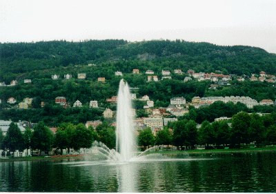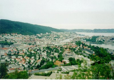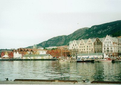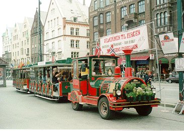 Bergenにはほぼ予定通り13:30分ごろに到着する。彼女は家に帰るといっていたのでここで別れた。まず、Bergenのツーリストインフォメーションに行き地図をもらう。Stavangerではノルウェー語、英語、ドイツ語の地図しかなかったが、ここBergenでは日本語訳されたものがあったので、やっぱり日本人観光客が多いのだろう。たしかに、船着き場からiまで歩いて5分ぐらいであるが、東洋人(日本人or韓国人?)を結構見かけた。観光客向けのちんちん電車などもあった。